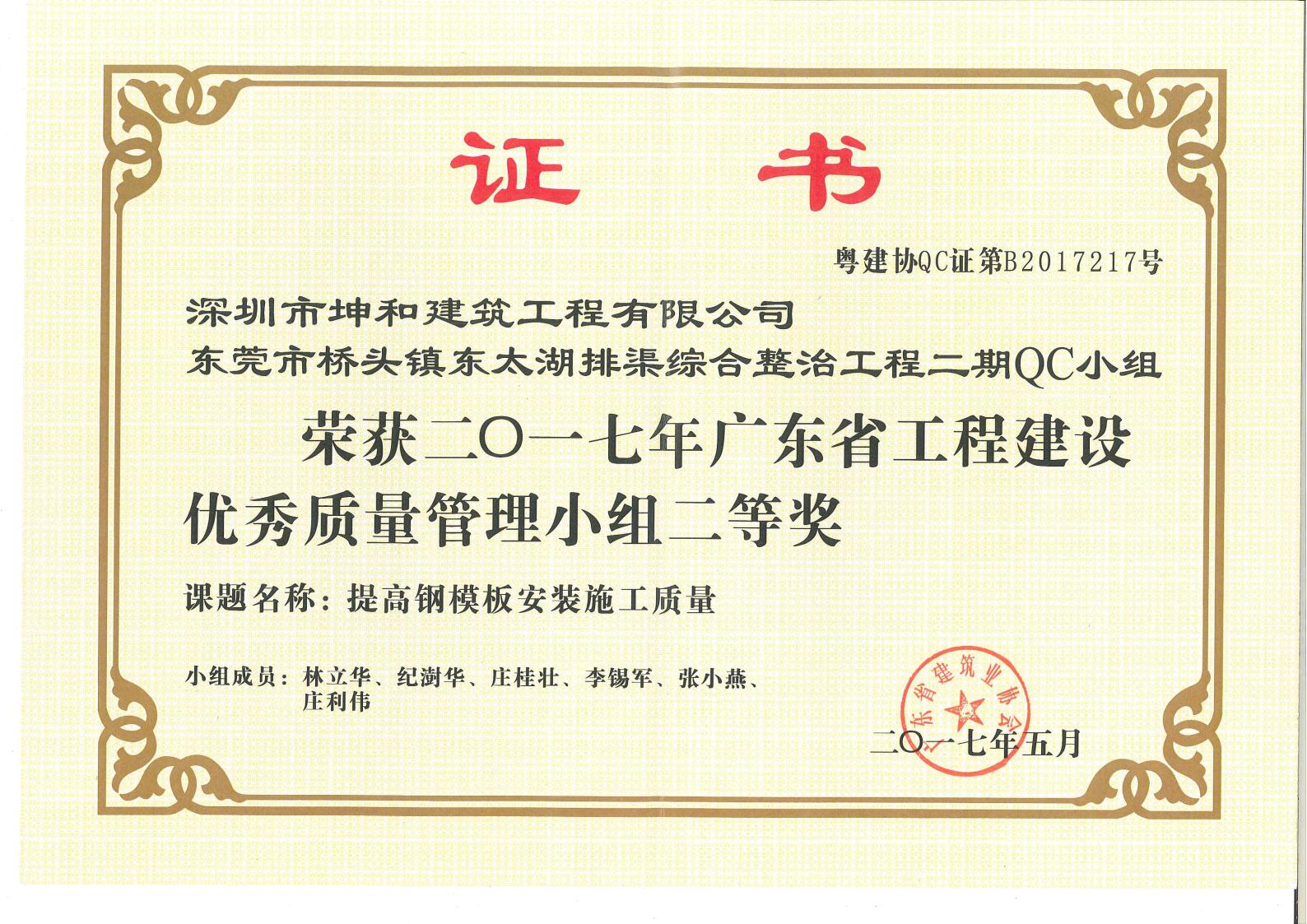 深圳市坤和建筑工程有限公司于二00五年十一月廿八日成立,經(jīng)過全體員工的共同努力,公司發(fā)展迅速,目前公司注冊資金為12010萬元,是一支具有房屋建筑工程施工總承包一級;市政公用工程施工總承包一級;水利水電工程施工總承包二級;地基基礎工程專業(yè)承包二級;建筑裝修裝飾工程專業(yè)承包二級;建筑機電安裝工程專業(yè)承包三級;鋼結(jié)構(gòu)工程專業(yè)承包三級資質(zhì)的專業(yè)施工隊伍,并于二00六年通過了ISO9001:2008標準﹑ISO14001:2004標準﹑GT/B2800-2001標準三項管理體系認證。